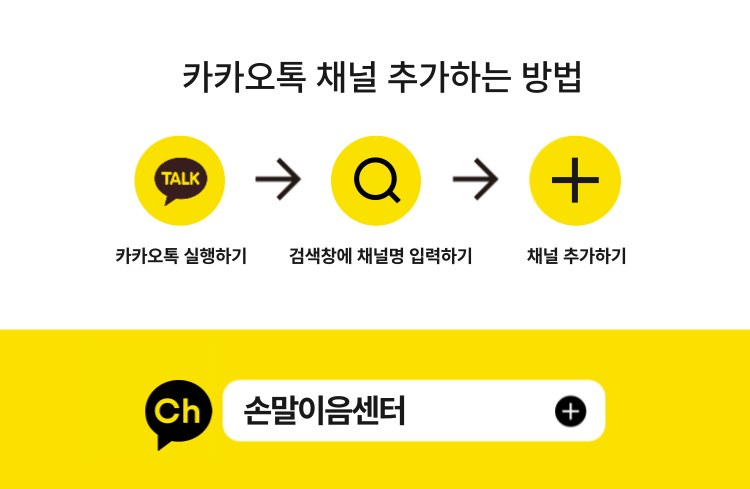 안녕하세요. 손말이음센터 운영자입니다. 중계서비스 이용 편의를 위해 카카오톡 손말이음센터 채널을 통한 문자중계서비스를 운영합니다. 카카오톡에 영상중계 기능이 없어, 문자중계서비스만 가능하오니 참고 부탁드립니다. 채널 검색 및 운영 일시 2023년 9월 1일(금) 10시부터 카카오톡 문자중계 이용가능시간 평일 (월~금) 10:00 ~ 17:00 이용방법 - 카카오톡 앱에서 '손말이음센터' 를 검색하여 채널에 접속합니다. - 카카오톡 손말이음센터 채널 우측 상단 말풍선을 클릭하면 채팅창에서 중계사에게 문자중계를 요청할 수 있습니다. - 중계사에게 통화하고 싶은 상대방의 전화번호를 전달합니다. - 중계사로부터 통화상대방과 전화가 연결되었다는 메시지를 받으면 전하고자 하는 통화내용을 문자로 전달합니다. 또한 손말이음센터 모바일앱의 노후화와 잦은 오류 발생으로 올해 하반기 중 모바일앱 서비스가 종료 예정입니다. 홈페이지(107.kr) 또는 카카오톡 채널을 통해 많은 중계 이용해주시고, 카카오톡 채널 구독 부탁드립니다. 감사합니다. ▶▶ 카카오톡 손말이음센터 채널 바로가기